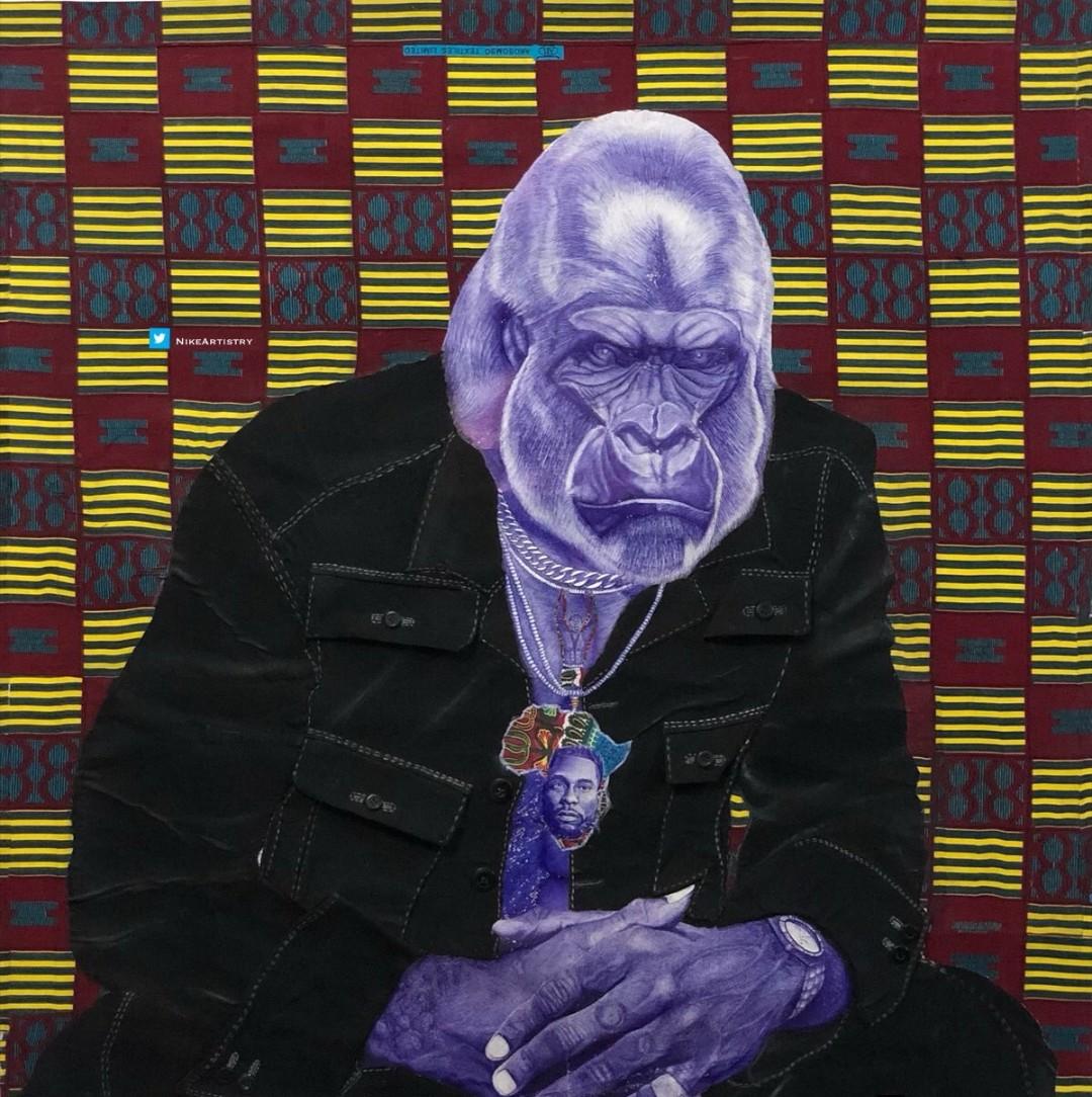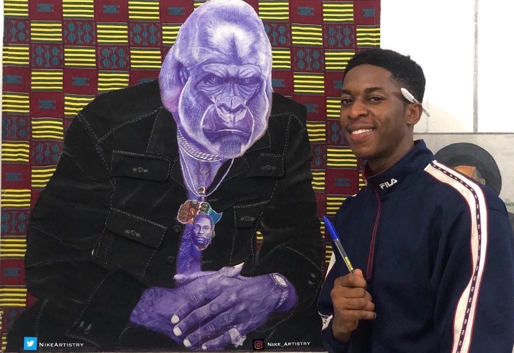 The portrait was done by young artist, Nike Artistry. He tagged the portrait “African giant”.