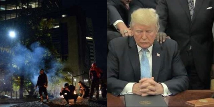 The Multnomah County Sheriff’s office declared a riot and made at least nine arrests, citing “widespread violence” in the city’s downtown area and repeatedly warning it could deploy munitions and tear gas.