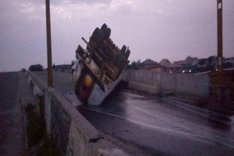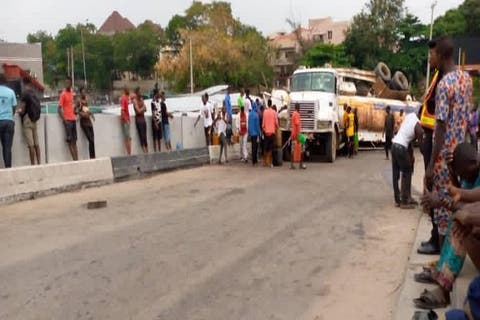 A tanker believed to be filled with petrol on Sunday fall down at Festac link bridge.