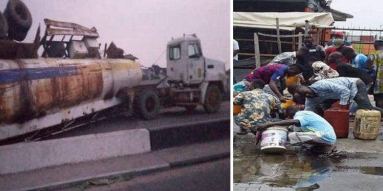 They scooped fuel from nearby gutters where the spilled contents from the tanker were settled.