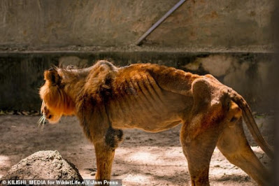 After paying a one dollar entrance fee to the state-owned zoo, he came across a painfully thin lion – which looked as if it was on the verge of death – locked up in a cement cage.