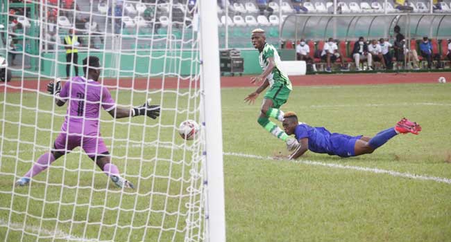 A minute after Kamara’s miss the Eagles doubled their lead on 22 minutes thanks to Osimhen who finished at the far post off a low cross from Zaidu Sanusi.