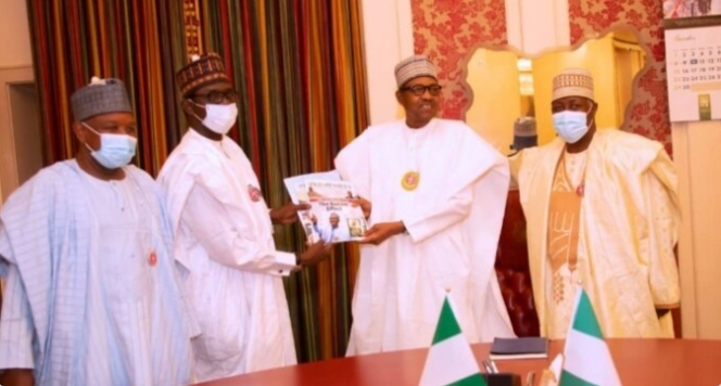 The copies of the magazine were presented to President Buhari at the Presidential villa in Abuja on Thursday by the governor of Yobe and chairman, APC caretaker/extraordinary convention planning committee, Mai Mala Buni.