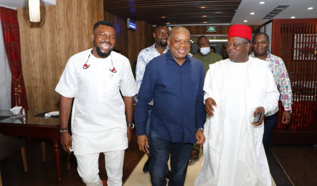 Governor of Ebonyi State and new member of the ruling All progressive’s Congress (APC), Engr. David Umahi on Sunday evening met with the Senate Chief Whip and Southeast leader of the APC Senator Orji Uzor Kalu.