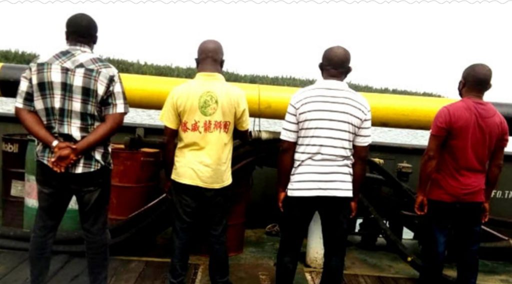 The Port Harcourt Zonal Office of the anti-graft agency received the suspects from the navy on Tuesday alongside a vessel – MV Captain Samuel.