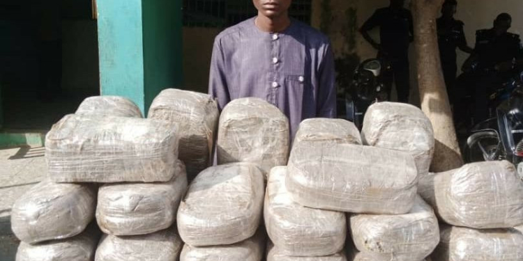 The police in Kano has arrested a 21-year-old, Kabiru Mahmud, alongside his mother and uncle for being in possession of 49 parcels of Indian hemp.