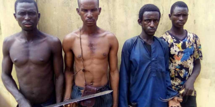 Oyeyemi, said, the suspects, Abubakar Ibrahim, 38, Sulaiman Yusuf 32, Ismail Yusuf 20, Umar Aliu 26,hgi and Yinusa Musa were arrested following a distress call made by one Obisesan Seye, the shepherd in charge of the church.