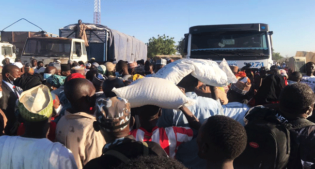 Hajiya Faruoq listed the items to be presented to the victims to include:13, 000 bags of 12.5kg rice (5 ½ trailer load); 13,000 bags of 12.5kg maize (5 ½ trailer load); 13,000 bags of 25kg beans (11 trailer load); 1,300 kegs of vegetable oil; 2,116 cartons of seasoning 3 trailer load; 1,083 cartons of tin tomato; and 650 bags of salt.