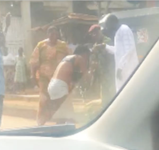 The lady, who was dressed in a pair of shorts and white knitted coverup, was trekking on the road, around 9:47 am at Oju-Ore in the Ota area of Ogun State, when she was assaulted.