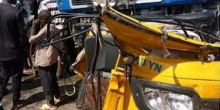 Five persons on Monday sustained varying degrees of injury in a motor accident involving a truck and a commercial tricycle in Onitsha, Anambra state.