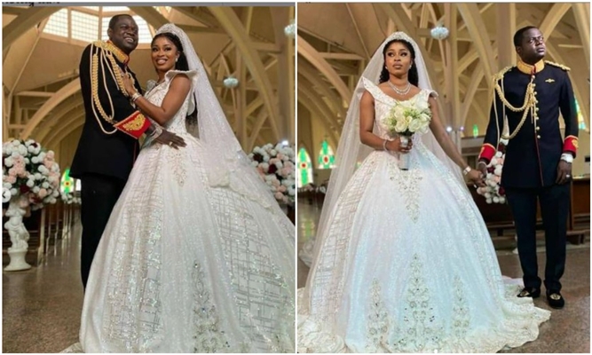 Following the royal church wedding of Michael Awujoola aka Malivelihood and his bride, the luxury designer, has given details of his wife, Deola’s wedding dress.