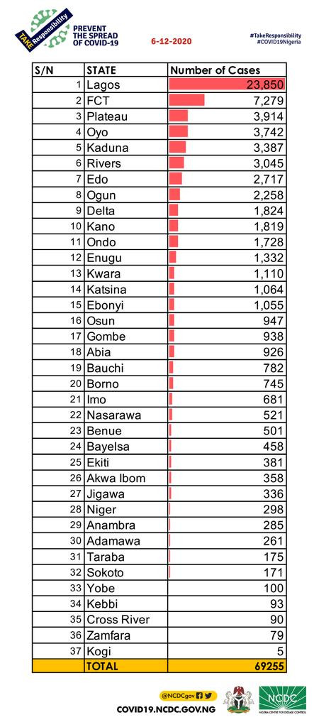 This was announced by the Nigeria Centre for Disease Control (NCDC) via its daily update for Sunday, December 6.