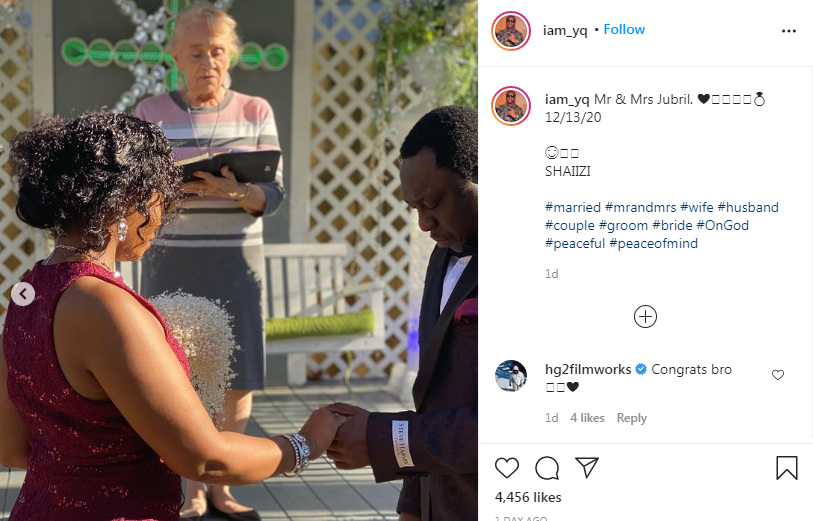 Well, in his latest Instagram post, the singer shared photos from their small and quiet wedding ceremony which showed the couple and a woman who officiated the ceremony.