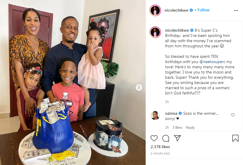 Naetochukwu Chikwe popularly known as NaetoC, a Nigerian rapper, turned a year older today December 17 and celebrated with his wife, Nicole, and their three kids.