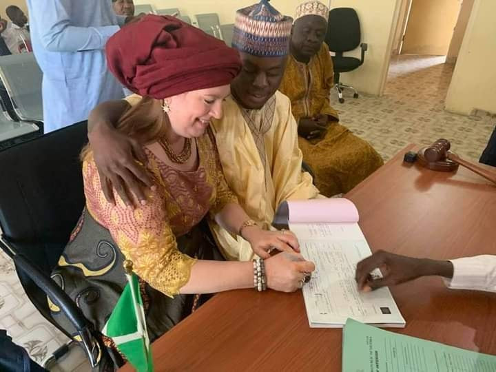A 23-year-old identified as Suleiman Isah and his American lover, Janine Anne Reimann had their court wedding at the Federal Marriage Registry, Kano state on Thursday, December 17.