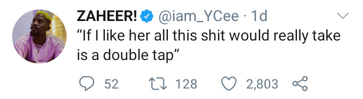 Taking to his official Twitter account, the Lagos-born rapper claims that he makes sure he ‘likes’ all pictures of his love interest on Instagram.