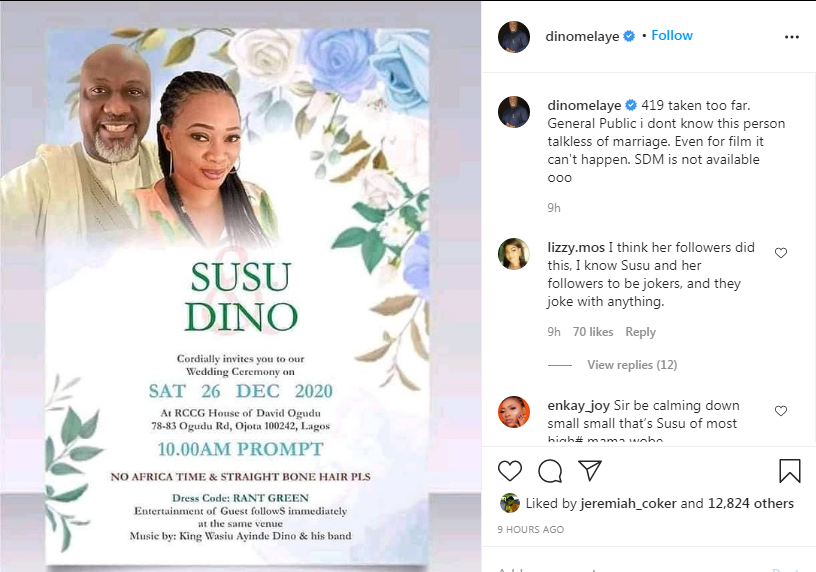 “419 taken too far. General Public, I don’t know this person talkless of marriage. Even for film, it can’t happen. SDM is not available ooo.”