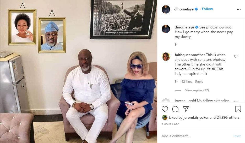 Taking to his Instagram page, the Senator who represented Kogi West in the 8th National Assembly, denied knowing the woman stating that the pictures were photoshopped.