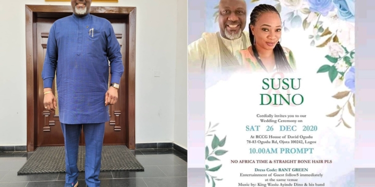 The wedding invite which has the picture of the former senator and a lady identified as, Susu or ‘Sussan Coker’ states that the pair are to get married on December 26, 2020.