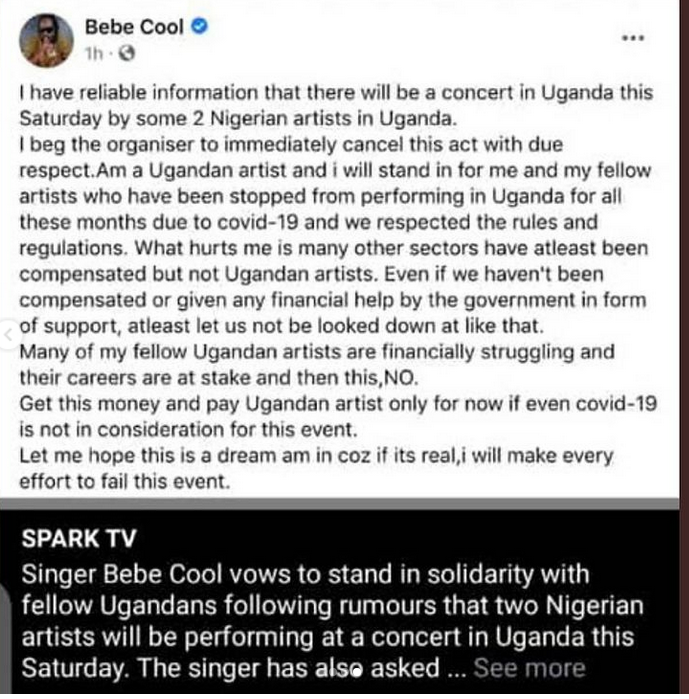 He said, “Dem say you Dey fuckup @BebeCoolUG … no wahala .. on G.”