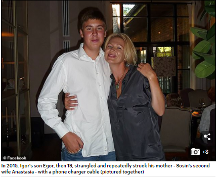 In 2015, the family was hit by tragedy when his son Egor, then 19, strangled and repeatedly struck his mother Anastasia Sosina-Novikova with a phone charger cable. Anastasis was Sosin’s second wife.