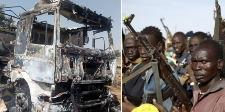 “A commercial trailer driver, one Alhaji Yusuf Tumburku who had just loaded 330 bags of maize belonging to a trader, Alhaji Hamza Ungwan Lalle Giwa, had his vehicle and the grains burnt to ashes. One other car was burnt by the armed bandits.