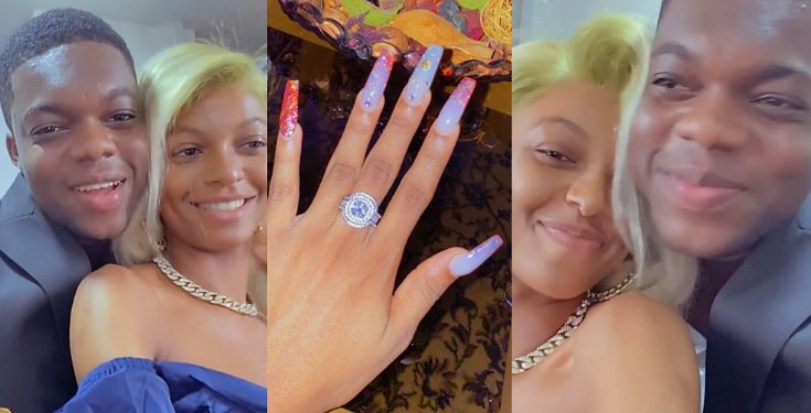 The love birds who do not shy away from sharing loved up photos and videos of themselves on their different Instagram pages, have finally made it official as the skit maker popped the question and got YES.