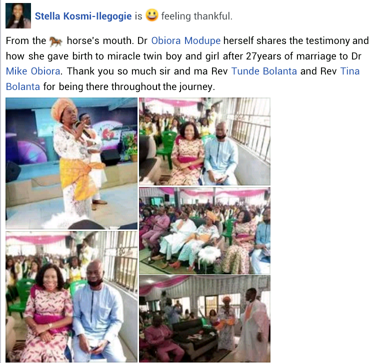 Dr. Modupe Obiora thanked God, her husband, his family as well as her own family and all those who prayed for them during the 27 years of waiting.