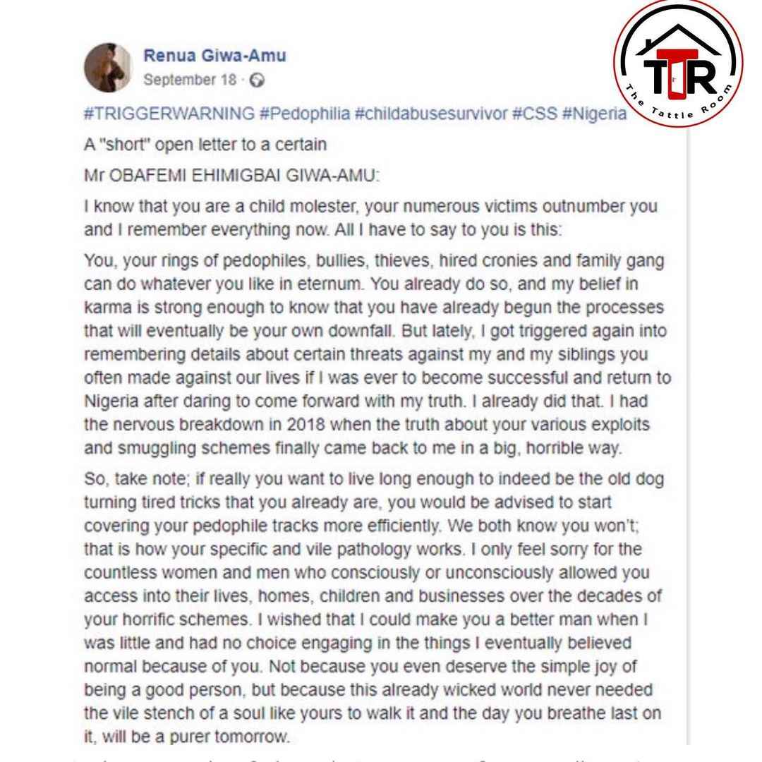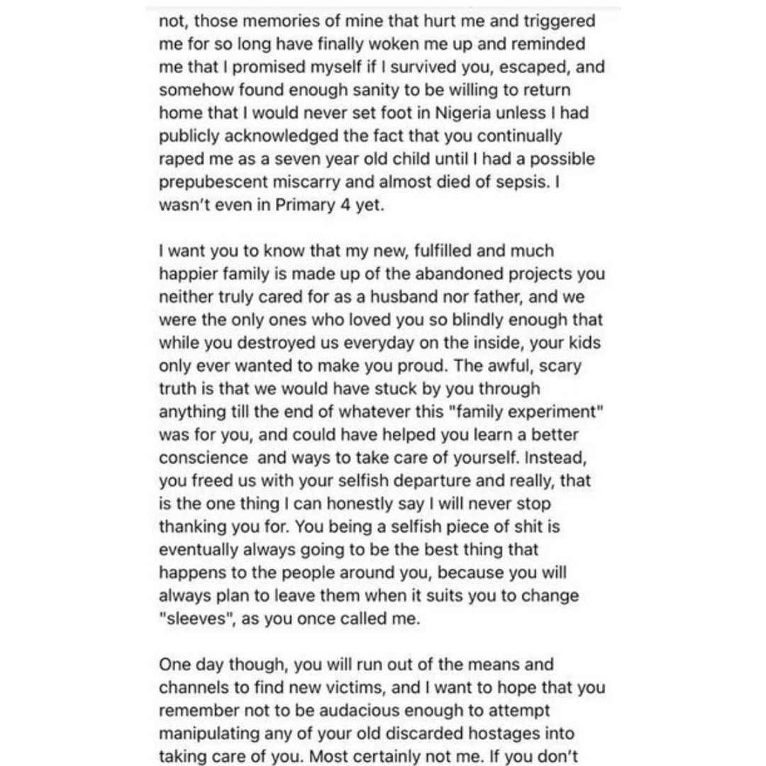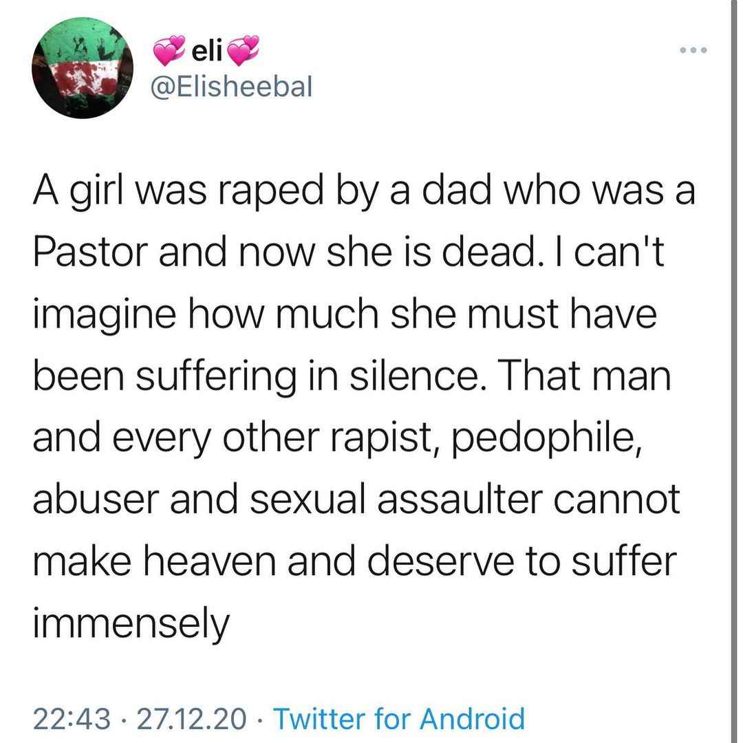 According to her, he is such a despicable pedophile who sexually abused numerous other underage children that it got to a point in time her friends refused to visit her at home for fear of being defiled by her father.