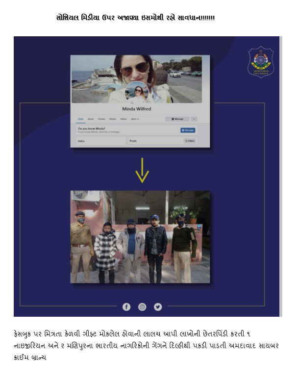In April this year, complainant Dashrath Patel, 52, an employee of a private company, received a friend request on Facebook from one ‘Minda Wilfred’.