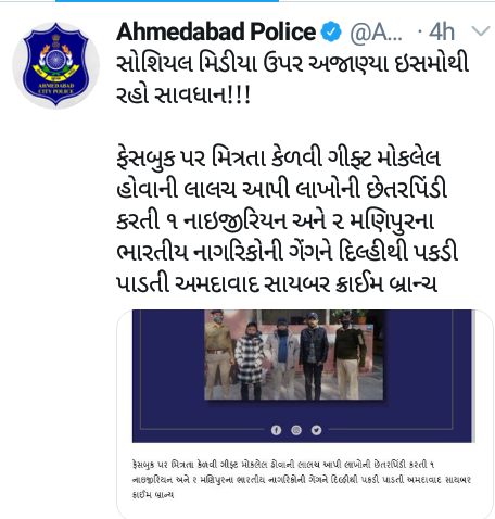 A Nigerian national and two Manipurnatives have been arrested by the Ahmedabad city cybercrime sleuths for allegedly defrauding a man out of Rs 1 lakh (520,571.680) on the pretext of sending him gifts from the UK.