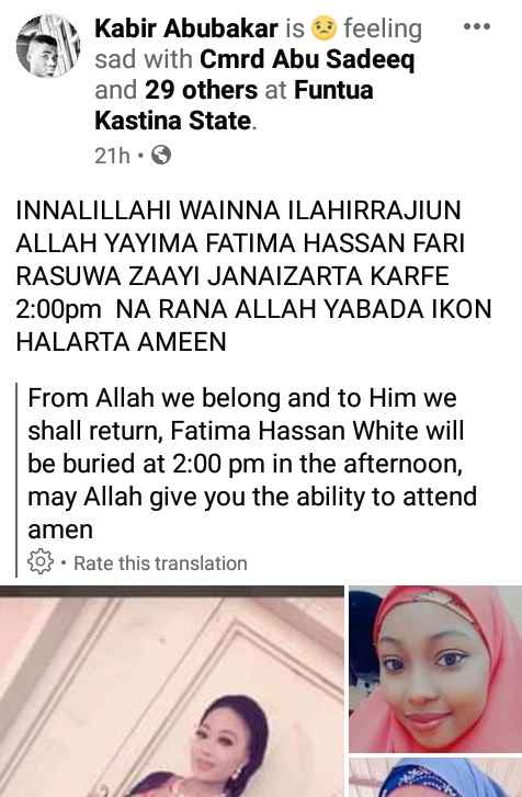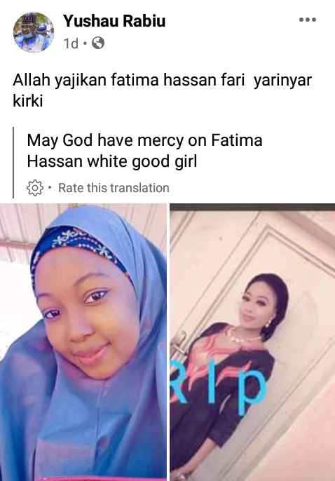 Meanwhile, friends and family members have taken to Facebook to mourn her death. A school friend, Mallam Muhammad Sani Isah described Fatima as an upright lady and a humanitarian.