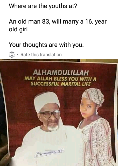 A 16-yr-old young girl identified as Amina Mohammed is reportedly set to wed an 83-yr-old man identified as Alhaji Yushu’a Suleiman in Niger state.