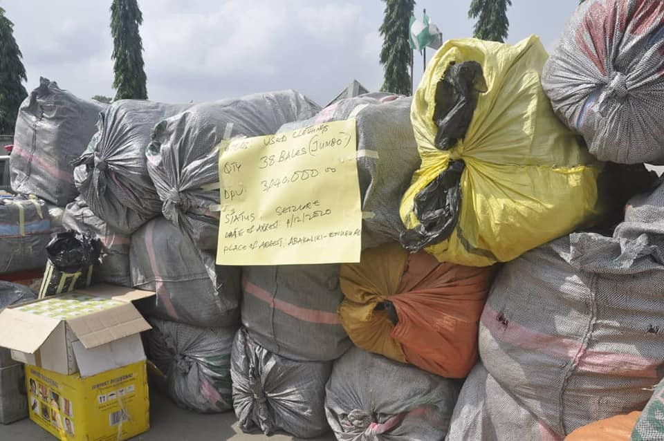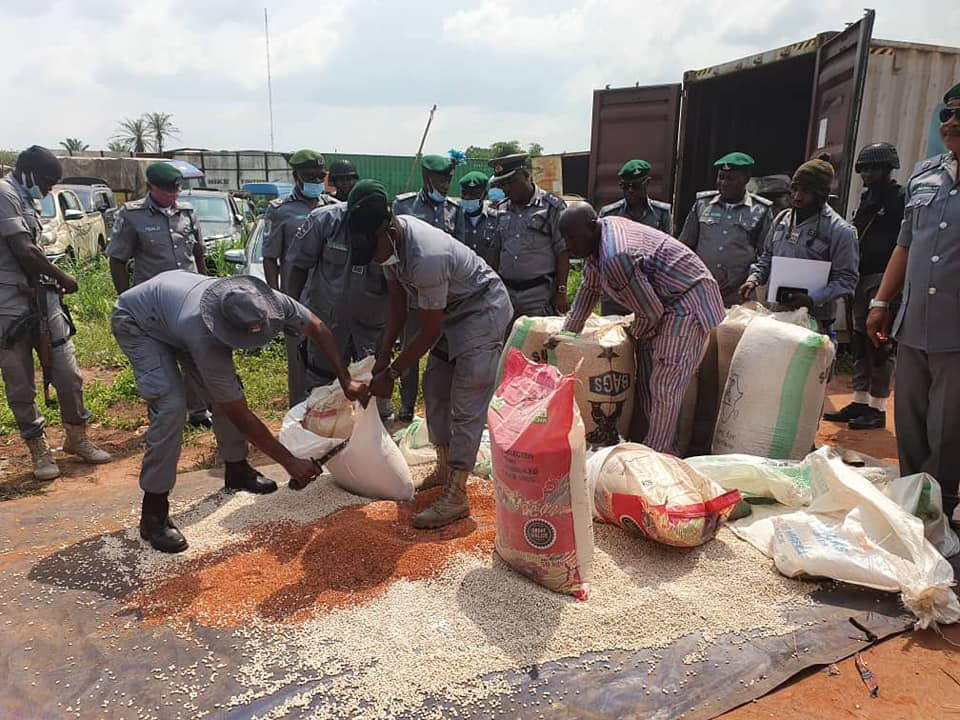 Other seized items include 1,215 bags of foreign parboiled rice 50kg each mostly concealed in bags of beans, maize and groundnut seeds all with the aim of deceiving our officers, 38 Jumbo bales of used clothing, and 204 cartons of imported tomatoes.