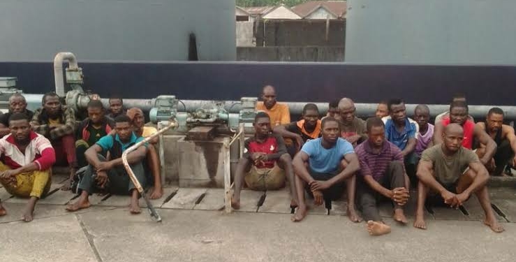 The Nigerian Navy, Forward Operating Base (FOB), Igbokoda, on Sunday, said no fewer than 24 suspected illegal oil thieves were arrested on the coastal waters in Ilaje Local Government Area (LGA) of Ondo State.