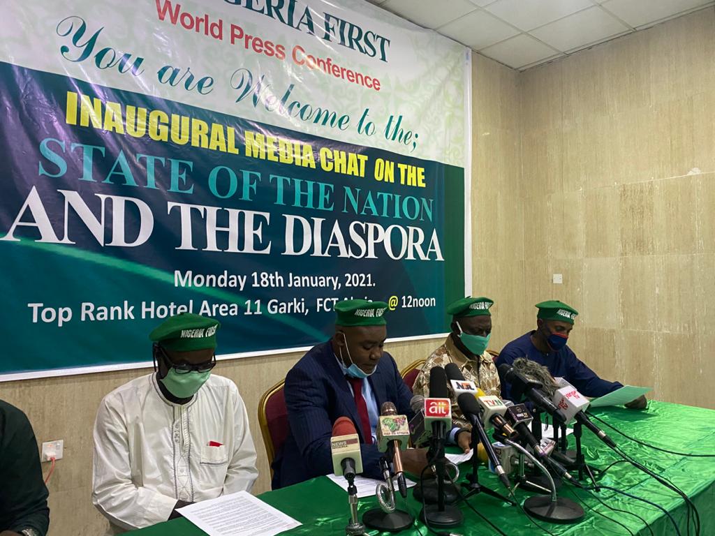 Consequently, Nigeria First uses this medium to send a clarion call to all well-meaning Nigerians to come together and save Nigeria before the destructive elements in our midst, and the Diaspora achieve their aims.