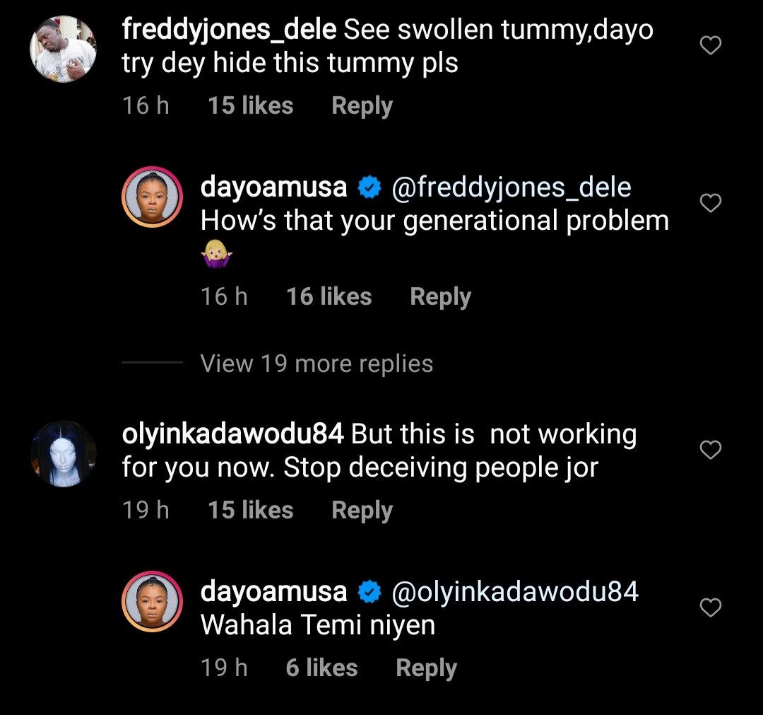 Dayo responded, telling the trolls that her weight is her problem, not theirs.