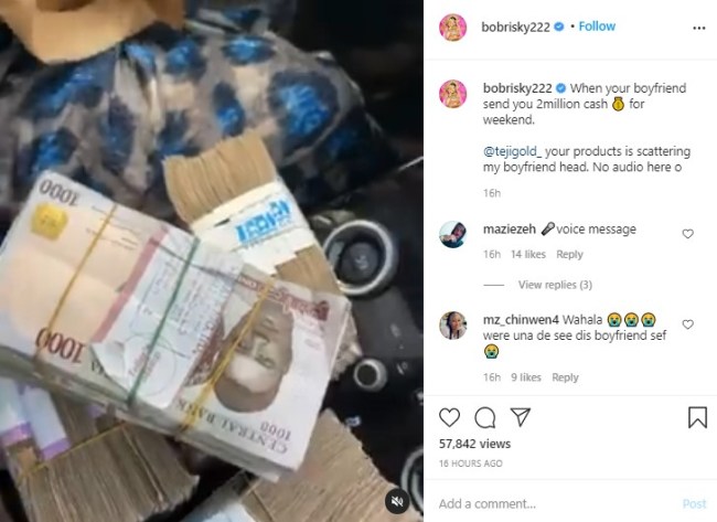 He also showed off the N2million gifted to him by his boyfriend for the weekend.