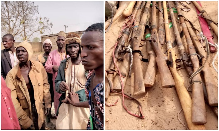 The men, who claimed they were going to hunt around Eruwa, were said to be at the back of a mini-truck but a searched carried out revealed that they all had Dane guns.