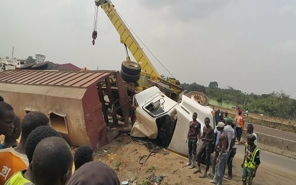 As at the time of this report the crashed truck was yet to be moved out of the road.