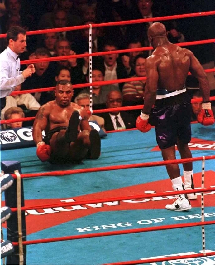 The first time Mike Tyson fought Evander Holyfield was in November 1996, with Holyfield winning this brutal contest with an 11th round TKO.