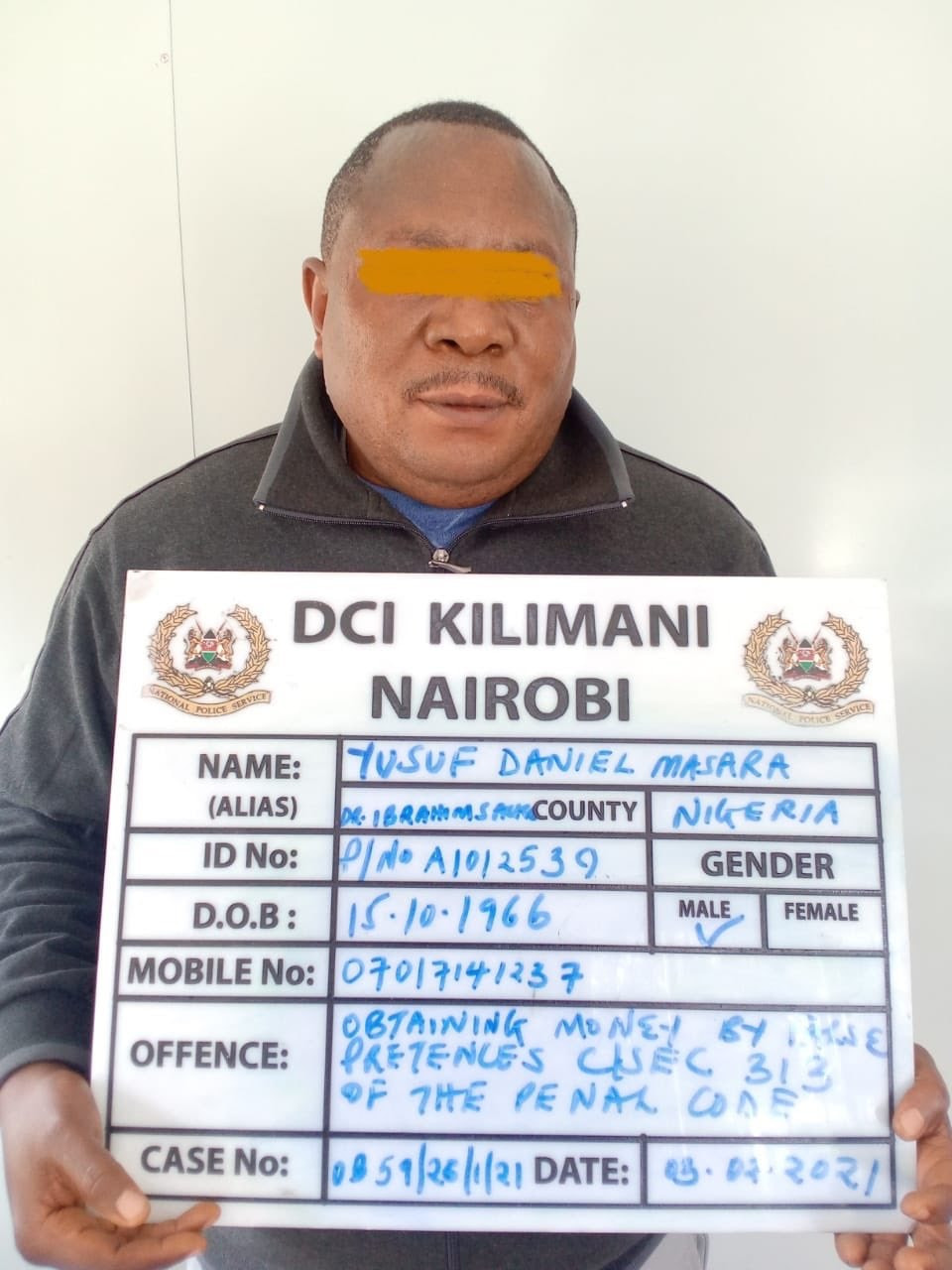 A 55-year-old Nigerian man identified as Yusuf Daniel Masara has been arrested by police officers in Kenya for allegedly defrauding a U.S national of Sh17.6 Million.