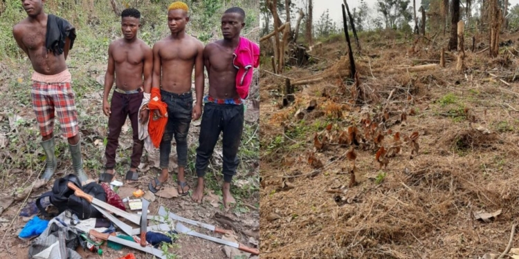 WITHIN NIGERIA learnt that the four suspects were apprehended by the JTF operatives while preparing parts of the forest reserve in Akure, the state capital ahead of the rainy season for the planting of their illicit business.
