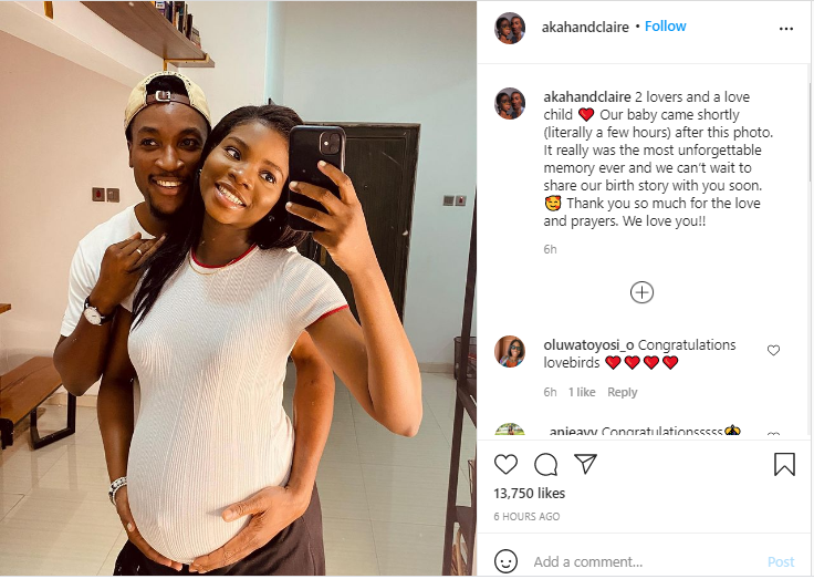 Nollywood actor and vlogger Akah Nnani has welcomed his first child with wife Claire Idera.