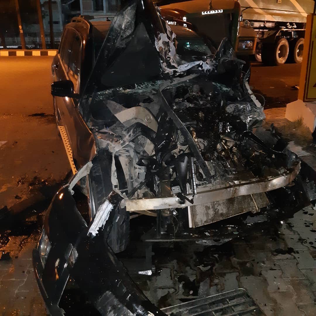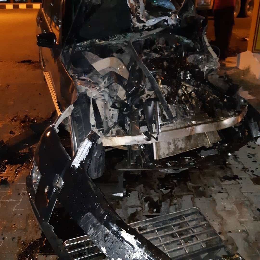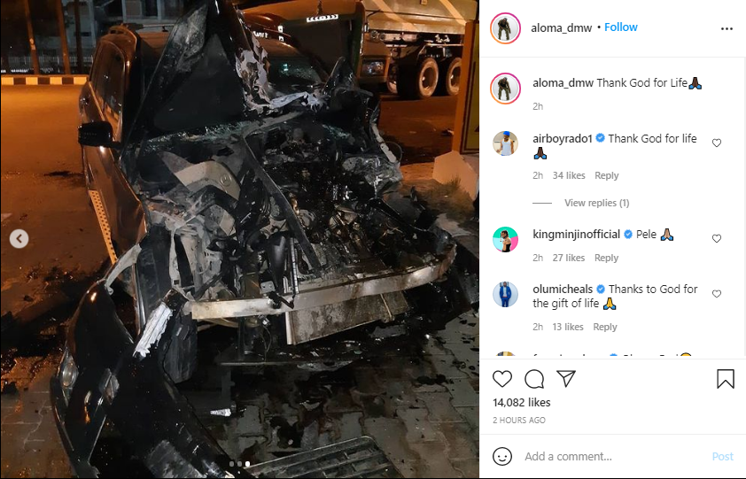 Taking to his social media page, Aloma DMW shared photos from the accident scene. Photos from the scene of the crash show the car with major damages.
