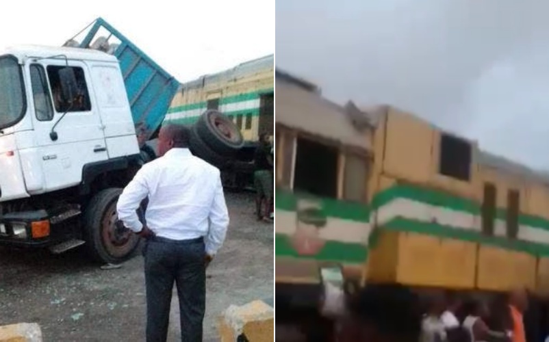A train on motion has on Monday, reportedly had a head-on collision with a truck loaded with animal feed.