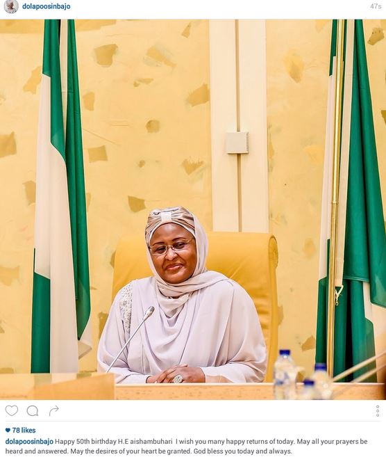 Dolapo Osinbajo, the wife of the Vice President of Nigeria is celebrating the President’s wife Aisha Buhari on her birthday, today.