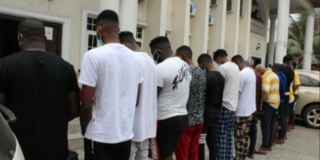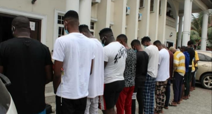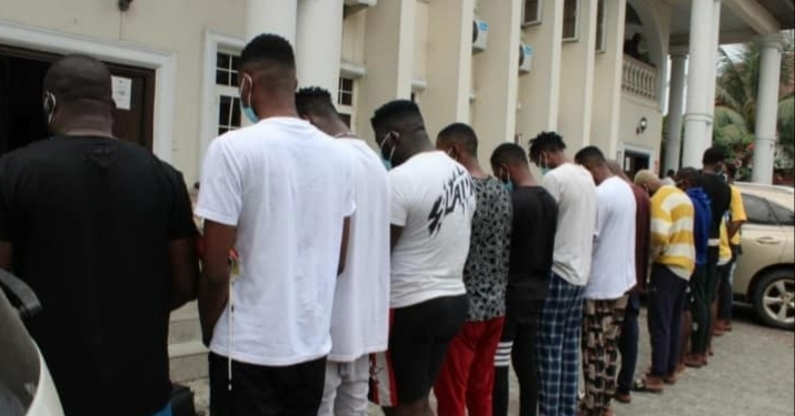 The other suspects whose ages range between 21 and 34 were identified as Anthony Joshua, Henry Mezie, Chukwuebuka Ahiwe, Michael Chinagorom, Jossy Irokwe, Ibe Chukwuebuka, Iroadinma Chibuike, Uchechukwu Divine and Nwosu Emmanuel.