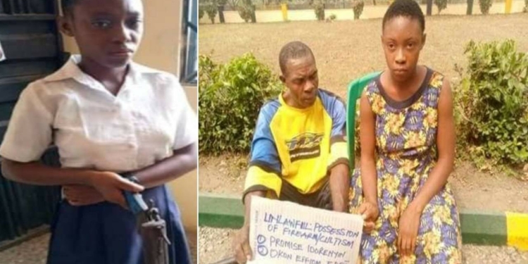 A 17-year old female student of Community Secondary School, Ikot Ewa in Akpabuyo Local Government Area of Cross River State who went to school with a gun has confessed to being member of a cult group named Sky Queens Confraternity.