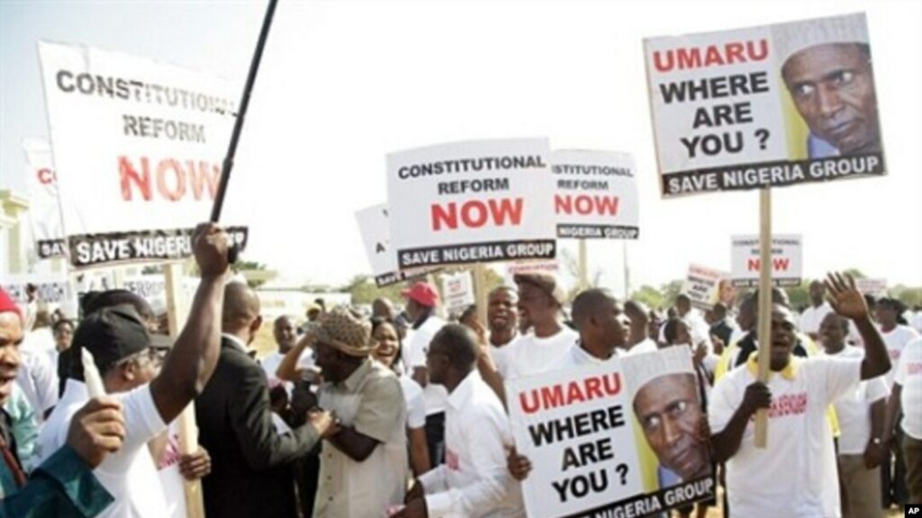 On this date, 10th of March in 2010, more than 1000 Nigerians gathered in the capital Abuja for a march to the presidency to demand the appearance of ailing leader Umaru Yar’Adua, two weeks after he returned from a Saudi hospital.